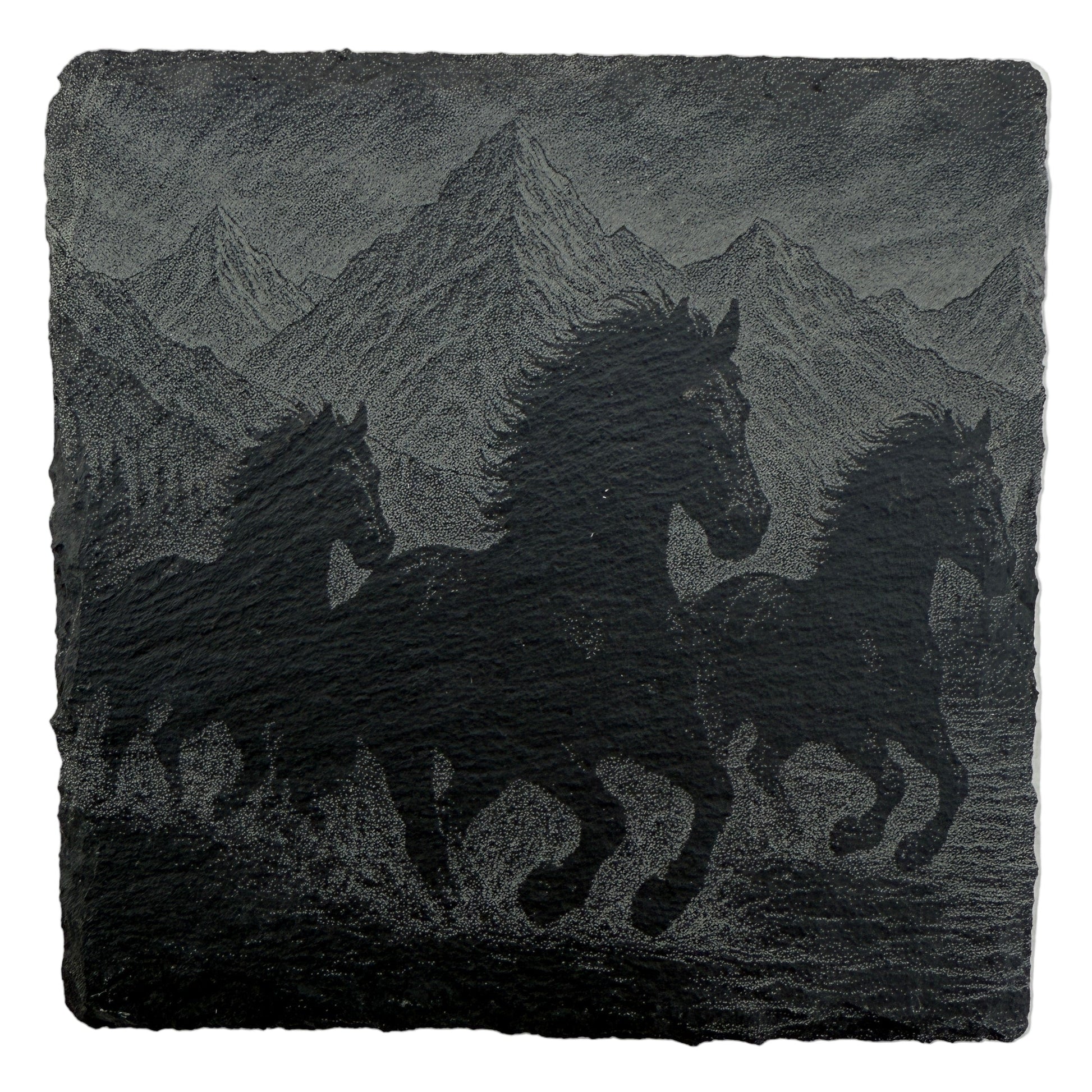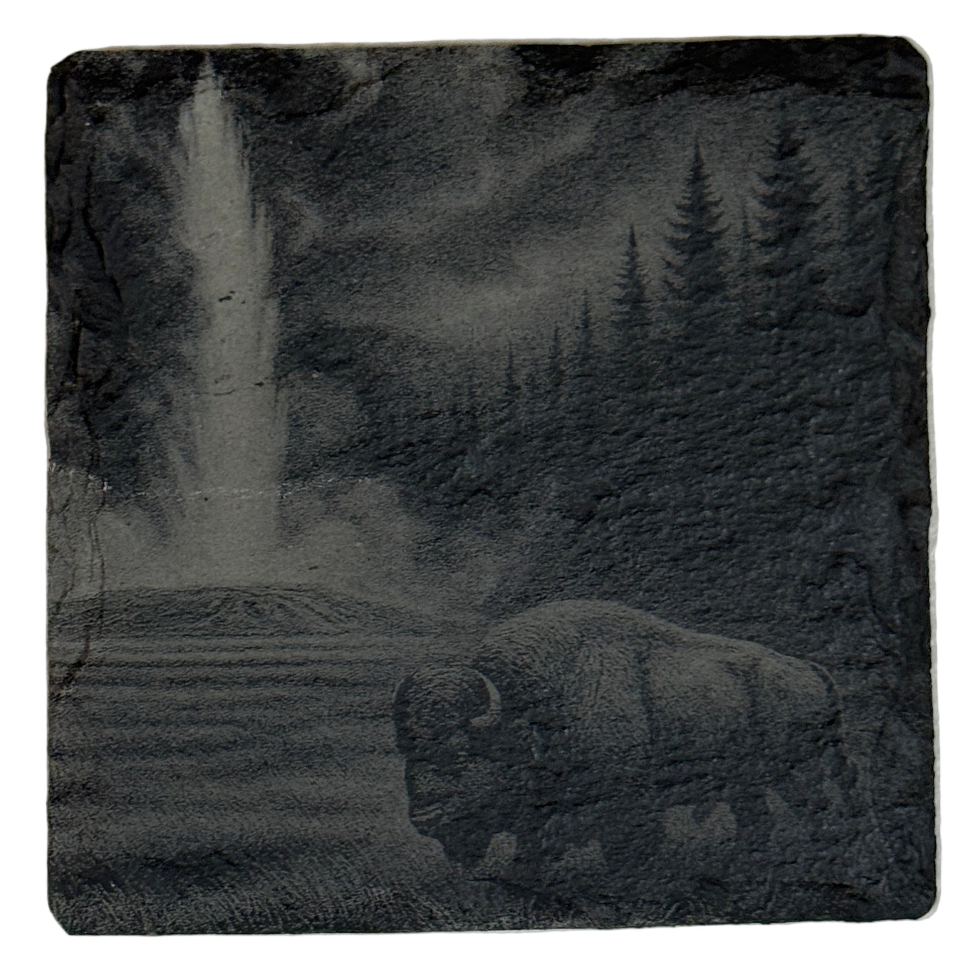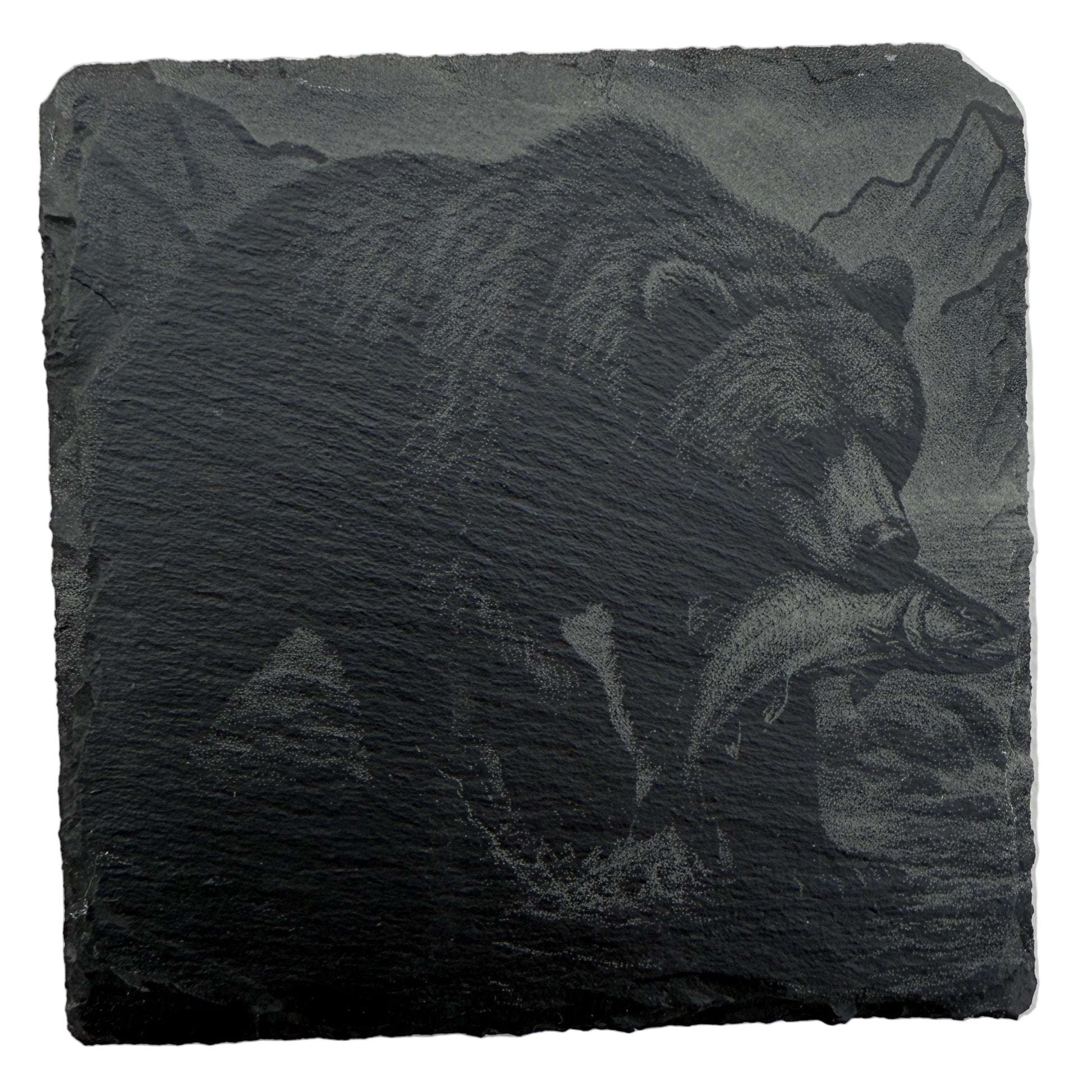 Each coaster is crafted from natural black slate and engraved with crisp, detailed artwork that highlights the beauty of wildlife and the rugged charm of the outdoors. Finished with a protective clear coat, they offer enhanced contrast, durability, and everyday functionality, all while adding a rustic, handcrafted touch to your home.