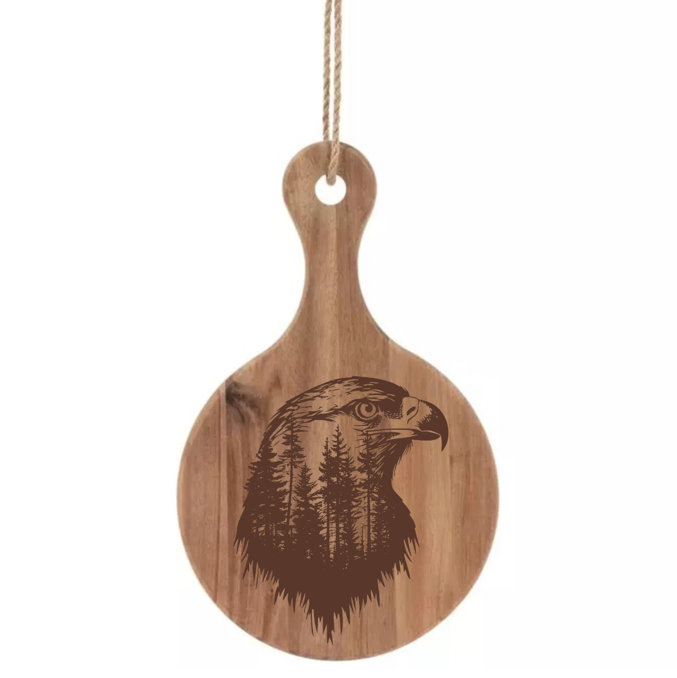 Bring timeless character and everyday functionality to your home with this beautifully laser-engraved eagle head design. Each piece is crafted from richly toned acacia wood, showcasing unique grain patterns that make every item truly one-of-a-kind. The smooth finish and detailed engraving highlight both the artistry of the eagle motif and the natural warmth of the wood.