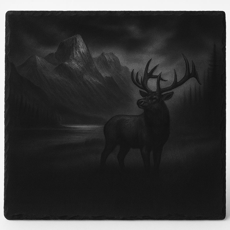 Bring a touch of rustic sophistication and handcrafted detail to your table with this beautifully laser-engraved elk slate board. Each piece is made from natural slate, featuring its own unique texture and organic edges that make every item truly one-of-a-kind. The detailed engraving and rich slate-gray tone create a timeless balance of rugged charm and refined craftsmanship.