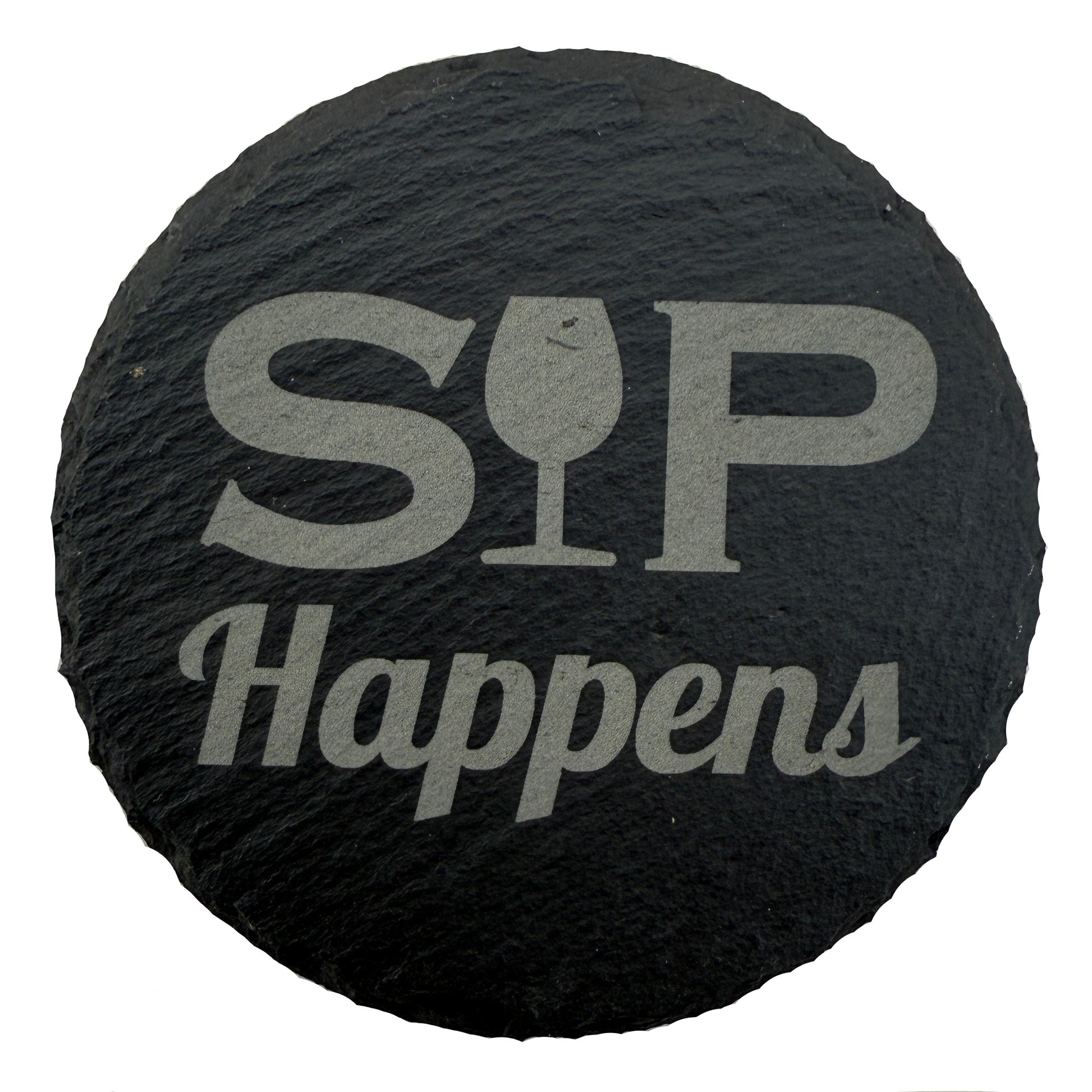 Add a fun, wine-loving touch to your home bar, kitchen, or entertaining space with this engraved slate coaster featuring the playful phrase: “Sip Happens.” Complete with a wine-glass silhouette incorporated into the design, this coaster is perfect for wine enthusiasts, casual sippers, and anyone who appreciates a clever twist on life’s little moments.